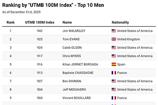 Insights from End of the Year '25 Top Athletes "UTMB Index"